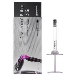 Средство для внутрисуставного введения Армавискон® Platinum (далее — средство) представляет собой бесцветный вязкий раствор.Область применения и назначениеОбласть применения — ортопедия, ревматология, травматология, хирургия, спортивная медицина.Средство Армавискон® Platinum является протезом синовиальной жидкости сустава в преднаполненных шприцах. Применяется на фоне дегенеративных изменений поверхности синовиального хряща для улучшения подвижности суставов, уменьшения болевого синдрома, снижения воспалительных реакций и восстановления гомеостаза в хряще.Свойства и эффективностьСредство оказывает анальгезирующее, корректирующее действие на метаболизм костной и хрящевой ткани.Армавискон® Platinum представляет собой стерильный вязкий раствор натриевой соли гиалуроновой кислоты (натрия гиалуроната) высокой степени очистки, высокомолекулярный (молекулярная масса составляет около 3 МДа). Гиалуроновая кислота — необходимый компонент экстрацеллюлярного матрикса, присутствует в высоких концентрациях в составе хряща и синовиальной жидкости. Гиалуроновая кислота обеспечивает вязкость и эластичность синовиальной жидкости, а также она необходима для формирования хряща. При остеоартрозе отмечаются дефицит и качественные изменения гиалуроновой кислоты в составе синовиальной жидкости и хряща. Внутрисуставное введение гиалуроновой кислоты приводит к улучшению функционального состояния сустава. При использовании средства Армавискон® Platinum при остеоартрозе коленного сустава отмечается улучшение клинического течения остеоартроза до шести месяцев с момента применения, наблюдается противовоспалительный и анальгетический эффект за счет восполнения объема и восстановления вязкости и эластичности синовиальной жидкости, которая заполняет полость сустава и выполняет роль внутрисуставной смазки. Она предотвращает трение суставных поверхностей, что позволяет устранить болевые ощущения и воспаление, а также защищает от преждевременного изнашивания и разрушения гиалинового хряща, обеспечивает подвижность, имеет амортизационные способности (гасит внешние удары, защищая компоненты сустава от повреждения).Раствор натрия гиалуроната распределяется местно в полости сустава, где он подвергается локальным преобразованиям, оказывая смазывающее действие.Извлечение или замена средства неприменимы, так как оно неотделимо смешивается с синовиальной жидкостью сустава.ОСНОВНЫЕ ТЕХНИЧЕСКИЕ И ФУНКЦИОНАЛЬНЫЕ ХАРАКТЕРИСТИКИ МЕДИЦИНСКОГО ИЗДЕЛИЯСредство для внутрисуставного введения Армавискон® Platinum выпускается по ТУ 9398- 007-64260974-2016 с соблюдением международных и национальных стандартов.Первичная упаковка средства состоит из шприца стеклянного стерильного с комплектующими (ФСЗ 2011/11237 от 26.12.2011; ФСЗ 2011/10770 от 28.02.2013; РЗН 2013/764 от 26.03.2018; ФСЗ 2009/04195 от 28.09.2020; ФСЗ 2012/12068 от 29.05.2017; РЗН 2018/7417 от 30.07.2018).Шприц имеет соединение типа Луер-Лок для фиксации иглы.В комплект может входить игла инъекционная одноразовая стерильная 18G 1 ½ (1,2×40 мм) или 21G 1 ½ (0,8×40 мм), или 21G 2 (0,8×50 мм) (РЗН 2018/7086 от 26.04.2018)или 18G 1 ½ (1,2×40 мм) или 21G 1 ½ (0,8×40 мм), или 21G 2 (0,8×50 мм), или 18G 2 (1,2×50 мм), или 18G 4 (1,2×100 мм), или 21G 4 ¾ (0,8×120 мм), или 21G 4 (0,8×100 мм)(ФСЗ 2007/00712 от 03.12.2007).Игла имеет силиконовое покрытие, сверхострую заточку ланцетного типа, обеспечивая практически безболезненный укол.По