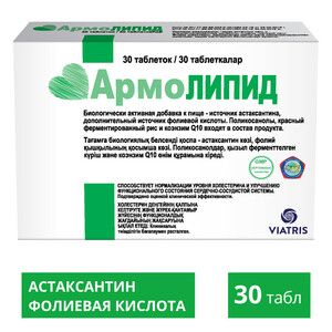 АрмоЛИПИД — биологически активная добавка к пище — источник астаксантина, дополнительный источник фолиевой кислоты.Поликосанолы, красный ферментированный рис и коэнзим Q10 входят в состав продукта.Кардиоваскулярный рискСердечно-сосудистые и цереброваскулярные заболевания являются основной причиной смерти и инвалидности во всем мире. Гиперхолестеринемия является независимым фактором риска сердечно-сосудистых заболеваний. Недавние научные исследования показали, что:• Любой уровень холестерина липопротеинов низкой плотности (ЛПНП) выше рекомендуемого значения связан с повышенным риском сердечно-сосудистых событий.• Снижение холестерина ЛПНП до оптимальных концентраций снижает этот риск• Независимым фактором риска сердечно-сосудистых заболеваний является высокий уровень гомоцистеина в крови, состояние, которое может развиться в случае дефицита фолиевой кислоты• Окислительный стресс, вызванный повышенным количеством свободных радикалов в организме из-за неправильного питания, курения, интенсивных физических нагрузок и заболеваний, оказывает проатерогенное действие, повышает риск неблагоприятного исхода сердечно-сосудистых заболеваний.Важной причиной развития атеросклероза является чрезмерное или несбалансированное питание, которое приводит к повышению уровня холестерина в крови, изменяет липидный профиль и определяет недостаточность жизненно важных факторов питания. Изменения в образе жизни (физические упражнения, здоровое питание и отказ от курения) являются краеугольным камнем в профилактике сердечно-сосудистых заболеваний.Для улучшения липидного профиля плазмы у пациентов с дислипидемией в современных руководствах рекомендуется использовать пищевые добавки и нутрицевтики (такие как красный дрожжевой рис и поликозанол), которые можно использовать в качестве альтернативы или в дополнение к гиполипидемическим препаратам в определенных условиях.Красный дрожжевой рисКрасный ферментированный (дрожжевой) рис является продуктом ферментации гриба Monascus purpureus и содержит монаколин К, который способен модулировать уровень липидов в крови. В АрмоЛИПИДе красный дрожжевой рис получают в стандартных условиях с определенным штаммом Monascus purpureus, выбранный для оптимального уровня выхода монаколина K (основного активного ингредиента красного дрожжевого риса), с четко определенным и гарантированным анализом титра. Экспериментальные и клинические исследования показали, что красный дрожжевой рис снижает общий холестерин и ЛПНП-холестерин.ПоликосанолыПоликоcанолы представляют собой смесь натуральных (природных) жирных спиртов, содержащихся в восковой матрице сахарного тростника (Saccharum officinarum), рисовых отрубях (Oryza sativa) и пчелином воске (Apis mellifera). Поликоcанолы, содержащиеся в АрмоЛИПИДе, получены из сахарного тростника. Поликоcанолы повышают эффективность контроля холестерина в крови.Фолиевая кислотаФолиевая кислота необходима для многих биохимических функций в организме человека, включая биосинтез нуклеотидов и повторное метилирование гомоцистеина в метионин. Дефицит фолиевой кислоты связан с высоким уровнем гомоцистеина в крови, те. состояния, известного как гипергомоциестеинемия, и признан независимым фактором риска сердечно-сосудистых заболеваний. Организм человека не может синтезиров