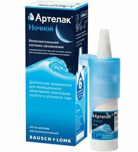 Артелак Ночной это средство для комплексного увлажнения, которое поддерживает все три слоя слезной пленки: липидную (за счет триглицеридов), водную (за гиалуроновой кислоты и глицерина) и слизистую фазу (за счет карбомера) с целью улучшения и поддержания увлажненности глазной поверхности при любых симптомах сухости и дискомфорта в глазах.Медицинское изделие, непрозрачный офтальмологический раствор, содержащий 0,24 % гиалуроновой кислоты (в форме натрия гиалуроната), карбомер, глицерин, липидный компонент (триглицериды среднецепочечные), натрия гидроксид и воду для инъекций.Передовая формула обладает очень хорошей переносимостью, поскольку не содержит консервантов и буферов.Представлен в доработанной инновационной многодозовой системе, не содержащей консерванты, которую просто и безопасно использовать. После вскрытия флакон с каплями можно использовать в течение 6 месяцев.