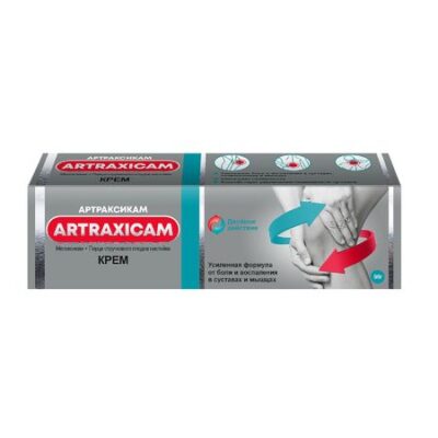 Показания Данные по фармакокинетике препарата не предоставлены. Фармакологическое действие Артраксикам оказывает противовоспалительное, анальгезирующее, противоотечное действие. Может вызывать легкую локальную гиперемию кожи, не оказывая при этом выраженного раздражающего действия на кожные покровы. Артраксикам уменьшает боль в суставах (в т.ч. в суставах позвоночника) и в мышцах в покое и при движении, способствует увеличению объема движения суставов (в области нанесения крема). Уменьшает утреннюю скованность и припухлость суставов. Мелоксикам избирательно ингибирует ЦОГ-2, нарушает метаболизм арахидоновой кислоты, уменьшает в очаге воспаления количество простагландинов (медиаторов боли и воспаления). Настойка перца стручкового содержит капсаицин, обладающий раздражающим действием на чувствительные рецепторы кожи, что приводит к местному анальгезирующему эффекту, к улучшению кровообращения в коже и подкожной клетчатке. Улучшение местного кровотока сопровождается усилением кровообращения в подлежащих тканях, что способствует удалению субстрата воспаления из патологического очага. При совместном воздействии мелоксикам и капсаицин оказывают больший эффект за счет синергизма, по сравнению с индивидуальным эффектом каждого из этих компонентов. Благодаря оптимальному сочетанию компонентов отмечается взаимное усиление их анальгезирующего и противовоспалительного эффектов. Лекарственное взаимодействие В настоящее время нет данных о взаимодействии препарата Артраксикам с другими лекарственными средствами.