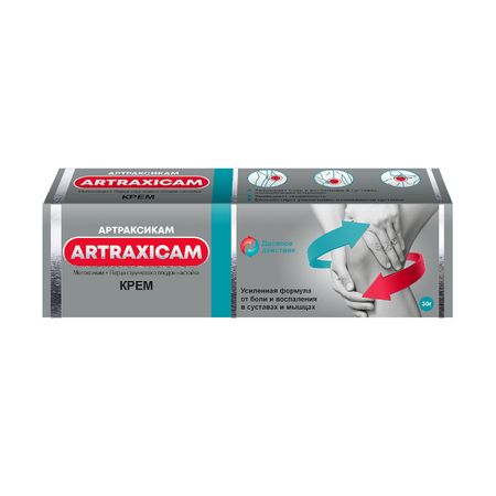 Показания Данные по фармакокинетике препарата не предоставлены. Фармакологическое действие Артраксикам оказывает противовоспалительное, анальгезирующее, противоотечное действие. Может вызывать легкую локальную гиперемию кожи, не оказывая при этом выраженного раздражающего действия на кожные покровы. Артраксикам уменьшает боль в суставах (в т.ч. в суставах позвоночника) и в мышцах в покое и при движении, способствует увеличению объема движения суставов (в области нанесения крема). Уменьшает утреннюю скованность и припухлость суставов. Мелоксикам избирательно ингибирует ЦОГ-2, нарушает метаболизм арахидоновой кислоты, уменьшает в очаге воспаления количество простагландинов (медиаторов боли и воспаления). Настойка перца стручкового содержит капсаицин, обладающий раздражающим действием на чувствительные рецепторы кожи, что приводит к местному анальгезирующему эффекту, к улучшению кровообращения в коже и подкожной клетчатке. Улучшение местного кровотока сопровождается усилением кровообращения в подлежащих тканях, что способствует удалению субстрата воспаления из патологического очага. При совместном воздействии мелоксикам и капсаицин оказывают больший эффект за счет синергизма, по сравнению с индивидуальным эффектом каждого из этих компонентов. Благодаря оптимальному сочетанию компонентов отмечается взаимное усиление их анальгезирующего и противовоспалительного эффектов. Лекарственное взаимодействие В настоящее время нет данных о взаимодействии препарата Артраксикам с другими лекарственными средствами.