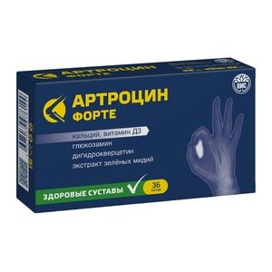 «Артроцин» — это идеальное средство борьбы с остеохондрозом, радикулитом, артрозом, отложением солей и другими заболеваниями суставов.Капсулы «Артроцин»: поддерживают гидратацию хряща, упругость и эластичность; тормозят развитие дегенеративных процессов в суставах (препятствуют разрушению); способствуют восстановлению хрящевой ткани; снимают отеки и оказывают противовоспалительное и обезболивающее действия; защищают хрящ и синовиальные оболочки суставов от воздействия свободных радикалов; участвуют в формировании связок, костей и соединительной ткани; препятствуют образованию камней в мочевыводящих путях; способствуют поддержанию эластичности сосудистой стенки.Основные эффекты:Действие капсул «Артроцин» направлено на остановку разрушительных дегенеративных процессов в суставах и восстановление поражённых суставных тканей.Хондроитин в составе капсул «Артроцин» оказывает хондропротективное, хондростимулирующее, стимулирующее регенерацию действие. Участвует в построении основного вещества хрящевой и костной ткани. Улучшает фосфорно-кальциевый обмен в хрящевой ткани, ингибирует ферменты, нарушающие структуру и функции суставного хряща, тормозит процессы дегенерации хрящевой ткани. Стимулирует синтез глюкозаминогликанов, способствует регенерации хрящевых поверхностей и суставной сумки. Предупреждает компрессию соединительной ткани, увеличивает продукцию внутрисуставной жидкости, увеличивает подвижность пораженных суставов, снижает потерю кальция и ускоряет процессы репарации костной ткани, тормозит прогрессирование остеоартроза. Кроме того, хондроитин обладает анальгезирующим действием, уменьшает болезненность суставов, боли в состоянии покоя и при ходьбе, выраженность воспаления. Это важнейшая составляющая современной терапии суставов.Глюкозамин стимулирует регенерацию хрящевой ткани, оказывает противовоспалительный, обезболивающий эффект. Стимулирует биосинтез аминогликанов, способствует восстановлению хрящевых поверхностей и уменьшению дегенеративных изменений в суставах. Нормализует продукцию внутрисуставной жидкости, уменьшает болезненность суставов, улучшает их подвижность.Кверцетин – антиоксидант натурального происхождения, природный биофлавоноид. Снижает скорость процессов перекисного окисления липидов клеточных мембран, препятствует повреждающему действию свободных радикалов, тормозит преждевременное старение клеток и развитие различных заболеваний. Кверцетин способствует защите хряща и синовиальных оболочек суставов от воздействия свободных радикалов.Экстракты белой коры ивы (Salix alba) и Хвоща полевого (Equisetum arvense) обладают мягким противовоспалительным действием, снимают отёчность суставов, покраснение и способствуют исчезновению болевых ощущений.Витамин Е – сильный природный антиоксидант, укрепляет стенки кровеносных сосудов, в особенности капилляров, обладает антибактериальными свойствами.1 капсула содержит:Хондроитин сульфат — 200 мгГлюкозамин — 150 мгЭкстракт коры белой ивы — 20 мгЭкстракт хвоща полевого — 10 мгКверцетин — 10 мгВитамин Е — 5 мгВитамин С — 5 мг