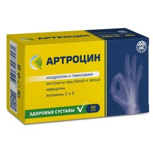 «Артроцин» — это идеальное средство борьбы с остеохондрозом, радикулитом, артрозом, отложением солей и другими заболеваниями суставов.Капсулы «Артроцин»: поддерживают гидратацию хряща, упругость и эластичность; тормозят развитие дегенеративных процессов в суставах (препятствуют разрушению); способствуют восстановлению хрящевой ткани; снимают отеки и оказывают противовоспалительное и обезболивающее действия; защищают хрящ и синовиальные оболочки суставов от воздействия свободных радикалов; участвуют в формировании связок, костей и соединительной ткани; препятствуют образованию камней в мочевыводящих путях; способствуют поддержанию эластичности сосудистой стенки.Основные эффекты:Действие капсул «Артроцин» направлено на остановку разрушительных дегенеративных процессов в суставах и восстановление поражённых суставных тканей.Хондроитин в составе капсул «Артроцин» оказывает хондропротективное, хондростимулирующее, стимулирующее регенерацию действие. Участвует в построении основного вещества хрящевой и костной ткани. Улучшает фосфорно-кальциевый обмен в хрящевой ткани, ингибирует ферменты, нарушающие структуру и функции суставного хряща, тормозит процессы дегенерации хрящевой ткани. Стимулирует синтез глюкозаминогликанов, способствует регенерации хрящевых поверхностей и суставной сумки. Предупреждает компрессию соединительной ткани, увеличивает продукцию внутрисуставной жидкости, увеличивает подвижность пораженных суставов, снижает потерю кальция и ускоряет процессы репарации костной ткани, тормозит прогрессирование остеоартроза. Кроме того, хондроитин обладает анальгезирующим действием, уменьшает болезненность суставов, боли в состоянии покоя и при ходьбе, выраженность воспаления. Это важнейшая составляющая современной терапии суставов.Глюкозамин стимулирует регенерацию хрящевой ткани, оказывает противовоспалительный, обезболивающий эффект. Стимулирует биосинтез аминогликанов, способствует восстановлению хрящевых поверхностей и уменьшению дегенеративных изменений в суставах. Нормализует продукцию внутрисуставной жидкости, уменьшает болезненность суставов, улучшает их подвижность.Кверцетин — антиоксидант натурального происхождения, природный биофлавоноид. Снижает скорость процессов перекисного окисления липидов клеточных мембран, препятствует повреждающему действию свободных радикалов, тормозит преждевременное старение клеток и развитие различных заболеваний. Кверцетин способствует защите хряща и синовиальных оболочек суставов от воздействия свободных радикалов.Экстракты белой коры ивы (Salix alba) и Хвоща полевого (Equisetum arvense) обладают мягким противовоспалительным действием, снимают отёчность суставов, покраснение и способствуют исчезновению болевых ощущений.Витамин Е — сильный природный антиоксидант, укрепляет стенки кровеносных сосудов, в особенности капилляров, обладает антибактериальными свойствами.