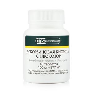 Аскорбиновая кислота с глюкозой – витамин, который играет важную роль в регуляции окислительно-восстановительных процессов, углеводного обмена, свертываемости крови, регенерации тканей, способствует повышению сопротивляемости организма. Выпускается в форме таблеток (100 мг + 877 мг).Препарат применяется в качестве профилактики и лечения гипо- и авитаминоза витамина С, для обеспечения повышенной потребности организма в витамине С в период роста, беременности, грудного вскармливания, при повышенных физических и умственных нагрузках, переутомлении, стрессовых состояниях, в период выздоровления после длительных и тяжелых заболеваний.Имеются противопоказания (в том числе, детский возраст до 3 лет). Отпускается без рецепта.