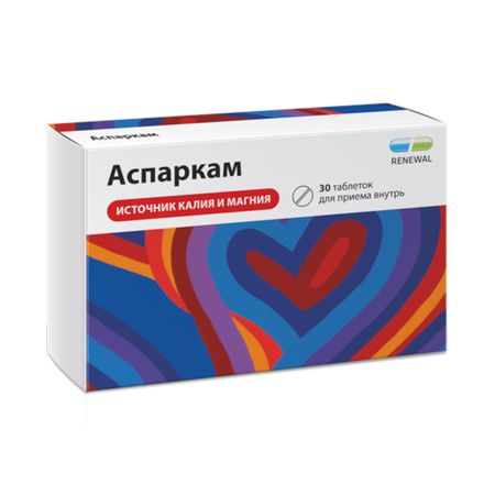 Показания Для устранения дефицита калия и магния в составе комбинированной терапии при различных проявлениях ИБС (включая острый инфаркт миокарда), хронической сердечной недостаточности, нарушениях ритма сердца (включая аритмии, вызванные передозировкой сердечных гликозидов). Фармакологическое действие Источник ионов калия и магния. Предупреждает или устраняет гипокалиемию. Улучшает обмен веществ в миокарде. Улучшает переносимость сердечных гликозидов. Обладает антиаритмической активностью. Аспарагинат переносит ионы калия и магния и способствует их проникновению во внутриклеточное пространство. Поступая в клетки, аспарагинат включается в процессы метаболизма. Ион магния играет важную роль в поддержании гомеостаза калия и кальция, обладает свойствами блокатора кальциевых каналов, участвует во многих ферментативных реакциях, метаболизме белков и углеводов. Лекарственное взаимодействие При одновременном применении с антиаритмическими средствами усиливается отрицательное дромо- и батмотропное действие антиаритмиков. При одновременном применении бета-адреноблокаторы, циклоспорин, ингибиторы АПФ, НПВС, калийсберегающие диуретики, заменители поваренной соли, содержащие калий, повышают риск развития гиперкалиемии. При одновременном применении с вяжущими и обволакивающими средствами уменьшается абсорбция из ЖКТ; со средствами для наркоза — возможно усиление депримирующего действия на ЦНС; с атракурия безилатом, суксаметония хлоридом — возможно усиление нервно-мышечной блокады. При совместном применении с калийсберегающими диуретиками (триамтерен, спиронолактон), бета-адреноблокаторами, циклоспорином, гепарином, ингибиторами АПФ, НПВП повышается риск развития гиперкалиемии вплоть до развития аритмии и асистолии. Магний снижает эффекты неомицина, полимиксина В, тетрациклина и стрептомицина.