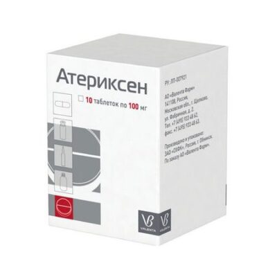 Главная » Аптека Атериксен 100 мг, 10 шт, таблетки Просмотров 5 Обнинская химико-фармацевтическая компания ОФКХ ЗАО