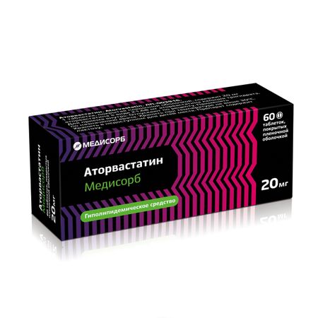 Главная » Аптека Аторвастатин Медисорб 20 мг, 60 шт, таблетки покрытые пленочной оболочкой Просмотров 7 Медисорб АО