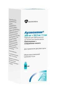Аугментин Порошок для приготовления суспензии для приема внутрь 200 мг+28,5 мг/5 мл флакон 70 мл