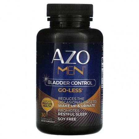 Pumpkin Seed Extract (Cucurbita pepo L.) 500 mg ** **Daily Value not established. Go-Less®Уменьшает эпизодические позывы к пробуждению & ПомочитьсяСпособствует спокойному снуНе содержит соиПоддерживает здоровье предстательной железыПищевая добавка1 капсула в деньБез наркотических веществБез глютенаБез молочных продуктовБез ГМОВас расстраивает желание пойти в туалет на всю ночь? Способность мужчины противостоять зову природы со временем может снизиться. С AZO Men ™ Bladder Control вы можете лучше контролировать свой вечер и быть более уверенными в своей жизни. Одна капсула в день поддерживает нормальную работу мышц мочевого пузыря и позволяет улучшить качество ночного сна.Меньше срочности. Больше сна: Предназначен для мужчин.Средство для контроля мочевого пузыря с Go-Less® от самого надежного бренда продуктов для здоровья мочевыводящих путей † содержит клинически изученный натуральный экстракт семян тыквы. Исследования показывают, что этот ингредиент помогает уменьшить частые позывы к мочеиспусканию, что позволяет сократить количество посещений ванной комнаты в ночное время и хорошо выспаться.† Бренд №1 среди самых надежных брендов по данным Nielsen от Total AZO от 23.01.21 и опросу Pharmacy Times за 2020 год.