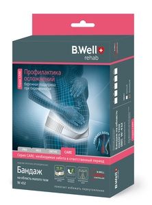 Бандаж на область малого таза B.Well rehab W-432 фиксирует органы малого таза в физиологически правильном положении.Ребра жесткости – пара гибких ребер жесткости и двойная вставка препятствуют скручиванию и деформации бандажа.Система фиксирующих ремней регулирует степень тазового кольца и снижает нагрузку на поясничный отдел позвоночника.Дышащий материал — тонкий воздухопроницаемый гипоаллергенный материал незаметен под обычной одеждой.Бандаж выполнен из мягкого эластичного материала. Благодаря анатомичному крою и свойствам материала в бандаже удобно не только двигаться, но и сидеть.Пара гибких ребер жесткости в области поясничного отдела позвоночника препятствует деформации и смещению бандажа во время движения Эффективный. Поддерживает поясницу и улучшает тонус мышц Мягкий и комфортный. Особенность модели W-432 – комфортный и мягкий материал, который имеет повышенную воздухопроницаемость. Бандаж B.Well можно надевать непосредственно на тело, без дополнительного белья. При этом он обеспечивает надежную поддержку. Цельнокройная конструкция без стыков и застежка-липучка велкро, скрытая под тесьмой, обеспечивают дополнительный комфорт при ношении. Дышащий материал. Тонкий воздухопроницаемый гипоаллергенный материал незаметен под обычной одеждой. Благодаря гигроскопичным свойствам материала, бандаж позволяет избавиться от излишней влаги для комфортного ношения даже в жаркую погоду. Система поддержки спины. Конструкция бандажа, укрепленная на спине с помощью ребер жесткости и усиленная двойной вставкой, надежно поддерживает и разгружает поясничный отдел позвоночника. Ребра жесткости. Пара гибких ребер жесткости и двойная вставка в области спины препятствуют скручиванию и деформации бандажа Система фиксирующих ремней. Регулирует степень поддержки тазового кольца и снижает нагрузку на поясничный отдел позвоночника Анатомичный крой Д.я мягкой поддержки живота и компенсации смещения центра тяжести. В бандаже W-432 удобно не только двигаться, но и сидеть. Долговечный. Бандаж можно носить в течение всего срока беременности. Легкий. Легкий вес бандажа повышает комфорт ношения бандажаМедицинский эффект Помогает избежать переутомления во время беременности Компенсирует смещение центра тяжести и уменьшает боли в поясничном отделе позвоночника Снижает риск преждевременных родов Рекомендуется женщинам с генетической предрасположенностью к появлению растяжек