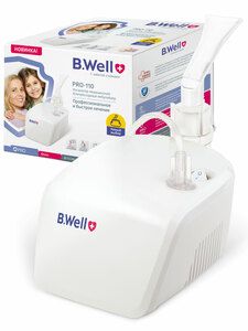 Компрессорный небулайзер B.Well PRO-110 обладает возможностями профессиональных приборов и соответствует Европейскому стандарту для небулайзеров EN 13544-1Малый размер частиц ≈3,16 мкм позволяет лекарству глубоко проникнуть в нужный отдел легких для быстрого выздоровления. Высокая скорость распыления 0,4 мл/мин сокращает время процедуры.Ингалятор-небулайзер PRO-110 подойдет для взрослых и детей. Надежный компрессор нового поколения, компактный дизайн, пониженный уровень шума делают этот прибор удобным для всей семьи. В комплект PRO-110 входят не только мундштук и маски для детей и взрослых, но и насадка для носа, которая позволяет использовать небулайзер при насморке.Функциональные особенности: Современный распылитель "Basic" Средний размер частиц (MMAD) ≈ 3.16 микрон Респирабельная фракция ˃ 70% — эффективная доставка лекарства Медицинская эффективность в соответствии с Европейским стандартом EN 13544-1 для небулайзеров Высокая скорость распыления 0,4 мл/мин обеспечивает эффективную процедуру и комфортное время ингаляции. В комплекте 2 маски — детская и взрослая. Также взрослые могут использовать мундштук Насадка для носа, которая поможет вылечить насморк Пониженный уровень шума Компрессор небулайзера PRO-110 рассчитан более чем на 10 лет работы. Держатель распылителя на корпусе прибора Питание от сетиХарактеристики:1. Рабочее напряжение: 230 В, 50 Гц, 1А 2. Макс. емкость распылителя: 8 мл 3. Мин. емкость распылителя: 2 мл 4. Размер частиц (MMAD): приблиз. 3,16 микрон % частиц5. Скорость распыления: 0,4 мл/мин 6. Остаточный объем распылительной камеры: 1 мл 7. Уровень шума: 54 dB 8. Вес PRO-110:1,345 кг. (без аксессуаров) 1,562 кг (в коробке с аксессуарами) 9. Максимальное давление: 2,2 бар 10. Размеры: 137 × 173 × 96 мм 11. Режим работы: 30 мин вкл / 30 мин отдых 12. Условия применения:Температура: MIN +10 °C – MAX +40 °C Влажность: MIN 10% RH – MAX 95% RH Атмосферное давление: 700 hPa – 1060 hPa