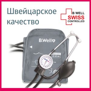 B.Well MED-63 — удобный механический тонометр со стетоскопом в комплекте. Благодаря встроенному стетоскопу и манжете с кольцом MED-63 подходит даже для самостоятельного контроля давления.Точный и надежный тонометр B.Well MED-63 имеет манометр с металлическим корпусом и удобной шкалой. Манжета для руки с обхватом 22-42 см отличается комфортом и надежностью, сделана из плотного нейлона с окантовкой края, имеет удлиненную застежку для прочной фиксации и эргономичный скругленный край для удобного надевания. Камера манжеты выполнена из латекса по бесшовной технологии. Нагнетатель позволяет комфортно накачать манжету и плавно выпустить воздух.Механический тонометр MED-63 надежен и долговечен, он подойдет для профессионального применения, но будет особенно удобен для домашней аптечки. Встроенный стетоскоп. Тонометр со стетоскопом в комплекте готов к работе! Головка стетоскопа встроена в манжету: такая конструкция делает измерение особенно удобным, позволяет самостоятельно провести себе измерение. Прослужит долго. Надежная конструкция и качественные материалы: металлический корпус манометра, долговечная манжета из плотного нейлона с окантовкой края и прочная латексная камера. Высокоточный манометр Металлический корпус. Для долгой службы тонометра Усовершенствованная манжета универсального размера. Универсальный размер для обхвата руки 22 — 42 см подойдет для людей разной комплекции. Манжета B.Well долговечна и комфортна: выполнена из прочного нейлона, имеет увеличенную застежка «велкро» и обработку края. Манжета с кольцом. Удобна для домашнего и профессионального применения. Манжету с кольцом легко надеть самостоятельно. Камера из латекса. Прочная и долговечная камера, сделанная по бесшовной технологии, прослужит долго Нагнетатель с удобным клапаном выпуска воздуха. Клапан с плавным выпуском воздуха обеспечивает комфорт в использовании Защита нагнетателя. Фильтр защитит нагнетатель от пыли — точный результат без помех Удобная сумка-чехол в комплекте. Оптимальный размер сумки: удобное и компактное хранение.