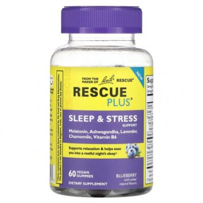 Bach, Rescue Plus, поддержка сна и стресса, голубика, 60 веганских жевательных таблеток