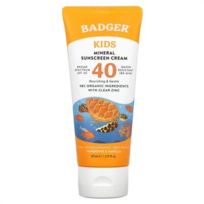 Badger Company, Clear Sport, для детей, натуральный минеральный солнцезащитный крем, солнцезащитный фактор SPF 40, мандарин и ваниль, 87 мл (2,9 жидк. унции)