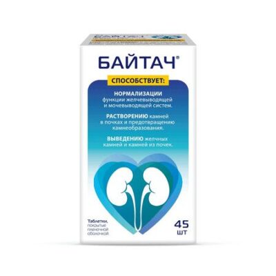 Главная » Аптека Байтач Таб.п.п.о.№45 Просмотров 3 Способствует растворению камней в почках и предотвращению камнеобразования;Способствует нормализации фукнкции мочевыводящей и желчевыводящей систем; Данафа Фармасьютикал Джойнт Сток Компани