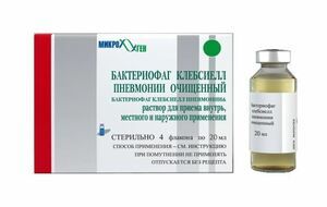 Главная » Аптека Бактериофаг клебсиелл пневмонии Раствор для приема внутрь 20 мл 4 шт Просмотров 7 Бактериофаг клебсиелл пневмонии, раствор во флаконе — иммунобиологический препарат – бактериофаг. Препарат вызывает специфический лизис бактерий Klebsiella pneumoniae. МИКРОГЕН