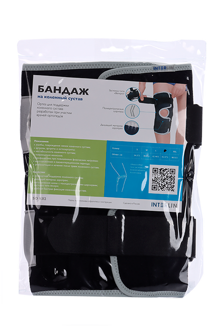 Бандаж ИНТЕРЛИН SO K02 на коленный сустав черный р XL