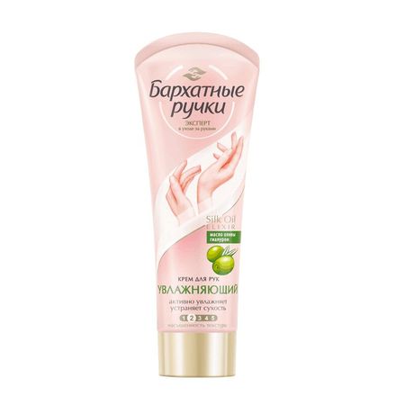 Бренд Бархатные Ручки представляет крем для рук Увлажняющий. Крем надежно защищает, питает и увлажняет кожу, сохраняя ее молодость и красоту. При регулярном использовании крем сделает кожу ваших рук более мягкой, эластичной и сияющей, а ногти более прочными. Используйте небольшое количество крема утром, обращая внимания на области ногтевых пластин, и вечером. Также применяйте крем в течение дня, как только почувствуете сухость кожи. Благодаря легкой текстуре крем превосходно впитывается, не оставляя жирных следов. Формула Silk Oil Elexir представляет собой комплекс, состоящий из микромасел и протеинов шелка. Благодаря своему размеру (до 10 мкм), эти частицы масел способны проникать внутрь эпидермиса, не нарушая липидный барьер, и доставлять питательные вещества клеточкам кожи. МАСЛО ОЛИВЫ — это жирное масло, которое получают из мякоти плодов оливкового дерева путем холодного и последующего горячего прессования. Значение масла для косметики определяется его прекрасными питательными и смягчающими свойствами, что позволяет использовать его в составе многих средств по уходу за кожей, в первую очередь для сухой и шелушащейся. ГЛИЦЕРИН оказывает смягчающее действие на кожу, увлажняет ее. Небольшие по размеру молекулы глицерина способны преодолевать липидный барьер кожи и проникать в глубокие слои эпидермиса. Исследования показали, что глицерин способствует нормальному процессу жизнедеятельности клеток эпидермиса. КОЛЛАГЕН способствуют поддержанию оптимального водного баланса в клетках кожи. рекрасно переносятся кожей и эффективно увлажняют и защищают кожу, предотвращая появление признаков старения. МАСЛО АВОКАДО замедляет старение кожи и предотвращает появление морщин. Питает кожу, способствует восстановлению ее защитного, иммунного барьера. Стимулирует выработку организмом коллагена и ускоряет процесс регенерации клеток кожи. РЕЗУЛЬТАТ: кожа мгновенно насыщена влагой! Свойства подтверждены клиническими испытаниями, РФ, 2015. Узнайте больше о продукте на официальном сайте www.silkyhands.ru/