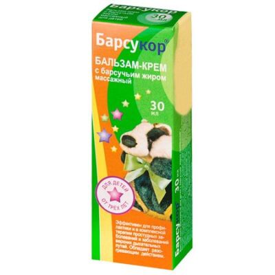 Бренд БАРСУКОР — это серия препаратов на основе барсучьего жира. Бренд уделяет особое внимание безвредности продукции, которая проходит многочисленные проверки на соответствие современным стандартам. В момент простуды и на каждый день.БАРСУКОР БАЛЬЗАМ-КРЕМ МАССАЖНЫЙ ДЕТСКИЙ — нежный крем светло-бежевого цвета имеет легкий нестойкий ментоловый ароматМожно применять детям от 3 летКрем эффективен в качестве вспомогательного разогревающего средства при симптомах простуды, при переохлаждении.Обеспечивает увлажнение и смягчение кожи в т.ч. во время массажа.Хорошо впитывается, не оставляя жирного блескаАктивные ингредиенты• Барсучий жир — витаминный заряд (витамины А и Е, ПНЖ), защита кожи• КАМФОРА — обладает местнораздражающим и антисептическим действием, обезболивает• МЯТЫ ПЕРЕЧНОЙ ЭФИРНОЕ МАСЛО — обеспечивает регуляцию работы сальных желез, сохранение влаги в коже, оказывает положительное действие на защитные силы кожи, служит хорошим антисептиком• ЭКСТРАКТ СТРУЧКОВОГО ПЕРЦА — стимулирует микроциркуляцию (разогревает), обладает бактерицидным действием• ТОКОФЕРОЛ (ВИТАМИН Е) — является сильнейшим антиоксидантомСпециальные особенности: Не содержит парабенов, искусственных отдушек и красителей!