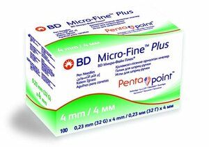 BD Micro-Fine Plus Иглы для шприц-ручки с заточкой Pentapoint 0,23 мм (32G) х 4 мм 100 шт