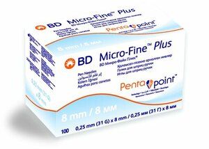 Игла для шприц-ручки BD Микро-Файн Плюс® с пятигранной заточкой по технологии PentaPoint® представляет собой одноразовое, стерильное медицинское изделие, которое с проникающей стороны содержит 5 углов заточки. Технология пятигранной заточки получила название PentaPoint Пятигранная заточка острия иглы предназначена для уменьшения сопротивления, возникающего при прохождении иглы через ткани, что позволяет снизить болевые ощущения пациента при инъекции и согласно Алгоритмами специализированной медицинской помощи больным сахарным диабетом рекомендуется для уменьшения болевых ощущений. Игла поставляется в стерильном виде и предназначена только для одноразового использования. Каждая игла BD Micro-Fine Plus покрыта силиконовой смазкой, что уменьшает силу, необходимую для проникновения иглы через кожу Совместимы со всем типом шприц-ручек (соответствуют требованиям “TYPE A” EN ISO 11608-22)