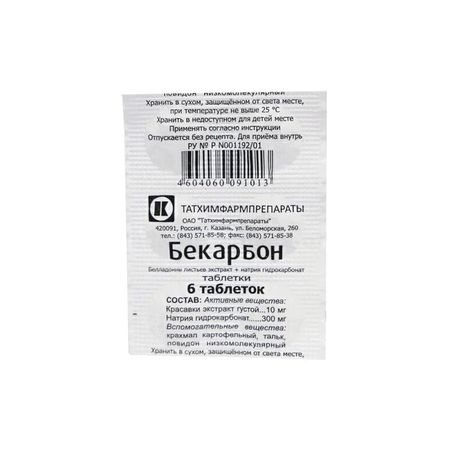 Фармакологическое действие Комбинированное лекарственное средство для приема внутрь. Оказывает спазмолитическое и антацидное действие. Экстракт листьев красавки оказывает спазмолитическое (м-холиноблокирующее) действие. Препятствует стимулирующему действию ацетилхолина; уменьшает секрецию слюнных, желудочных, бронхиальных, слезных, потовых желез, поджелудочной железы. Снижает тонус мышц ЖКТ, желчных протоков и желчного пузыря; вызывает тахикардию, улучшает AV-проводимость. Натрия гидрокарбонат при приеме внутрь взаимодействует с соляной кислотой желудочного сока, нейтрализуя ее. Увеличивает выведение натрия и хлора, осмотический диурез. Лекарственное взаимодействие При одновременном применении с м-холиноблокаторами возможно усиление м-холиноблокирующего действия.