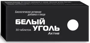 Показания к применениюБелый уголь рекомендуется в качестве биологически активной добавки к пище — дополнительного источника пищевых волокон — энтеросорбентов для улучшения функционального состояния желудочно-кишечного тракта.СоставДиоксид кремния (210 мг), микрокристаллическая целлюлоза 208 мг; вспомогательные вещества: сахарная пудра, крахмал картофельный