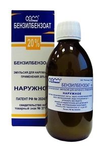 Показания к применениюПротивопаразитарное средство для наружного применения. Активен в отношении чесоточных клещей, а также вшей. Под действием бензилбензоата гибель чесоточных клещей наступает через 7-32 мин, вшей — через 2-5 ч.Применение при беременности и кормлении грудьюВозможно: аллергические реакции.Побочное действиеВ период лечения возможно обострение псориаза. При феохромоцитоме пропранолол можно применять только после приема альфа-адреноблокатора. После продолжительного курса лечения пропранолол следует отменять постепенно, под наблюдением врача. На фоне лечения пропранололом следует избегать в/в введения верапамила , дилтиазема . За несколько дней перед проведением наркоза необходимо прекратить прием пропранолола или подобрать средство для наркоза с минимальным отрицательным инотропным действием. Влияние на способность к вождению автотранспорта и управлению механизмами У пациентов, деятельность которых требует повышенного внимания, вопрос о применении пропранолола амбулаторно следует решать только после оценки индивидуальной реакции пациента.СоставЭмульсия для наружного применения 20% 1 г бензил бензоат 200 мг