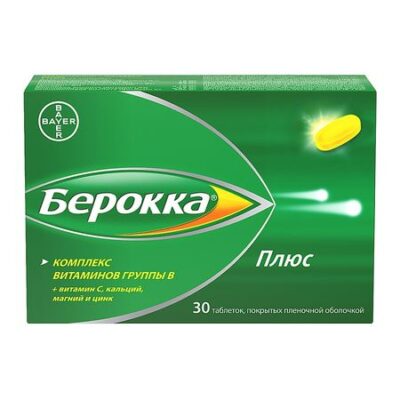 Показания Данные о фармакокинетике препарата Берокка® Плюс не предоставлены. Фармакологическое действие Комбинированный препарат, фармакологическое действие которого обусловлено входящими в его состав витаминами и микроэлементами. Витамины группы В участвуют во многих метаболических реакциях, в т.ч. синтезе нейромедиаторов. Витамин С (аскорбиновая кислота) является биологическим антиоксидантом и играет важную роль в инактивации свободных радикалов, увеличивает абсорбцию железа в тонком кишечнике, оказывает влияние на метаболизм фолиевой кислоты и функцию лейкоцитов. Стимулирует образование соединительной ткани, костной ткани, нормализует проницаемость капилляров. Кальций принимает участие во многих физиологических процессах, функционировании ферментных систем, передаче нервного импульса в комплексе с магнием и витамином В6. Магний участвует в различных реакциях, включая синтез протеина, метаболизм жирных кислот, окисление сахаров. Цинк в качестве катализатора активирует более чем 200 ферментов и является компонентом многих белков, гормонов, нейропептидов, гормональных рецепторов, а также непосредственно участвует в синтезе коэнзимов, производных пиридоксина. Водорастворимые витамины не накапливаются в организме, поэтому, при состояниях, сопровождающихся повышенной потребностью в витаминах и минералах, количество витаминов, поступающих с пищей, может оказаться недостаточным. Лекарственное взаимодействие Пиридоксин в дозе, превышающей 5 мг, может нейтрализовать действие леводопы у пациентов с паркинсонизмом. Однако такого антагонизма не наблюдается при применении леводопы в сочетании с ингибитором декарбоксилазы (например, бенсеразид, карбидопа). Тиосемикарбазон и 5-фторурацил нейтрализуют действие тиамина. Антацидные препараты ингибируют резорбцию тиамина. Неомицин, аминосалициловая кислота и блокаторы гистаминовых Н2-рецепторов уменьшают абсорбцию цианокобаламина. Ацетилсалициловая кислота уменьшает абсорбцию аскорбиновой кислоты приблизительно на треть. Пероральные контрацептивы могут уменьшить содержание в сыворотке цианокобаламина, фолиевой кислоты, пиридоксина, аскорбиновой кислоты. У некоторых пациентов, ежедневно принимающих дефероксамин и аскорбиновую кислоту в дозе 500 мг, могут отмечаться преходящие нарушения функции левого желудочка.