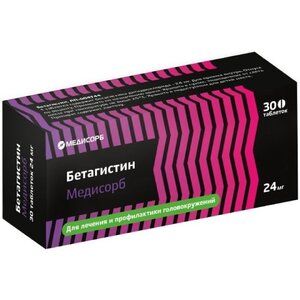 Главная » Аптека Бетагистин Медисорб Таблетки 24 мг 30 шт Просмотров 7 Круглые плоскоцилиндрические таблетки белого или почти белого цвета с фаской и риской с одной стороны. Медисорб