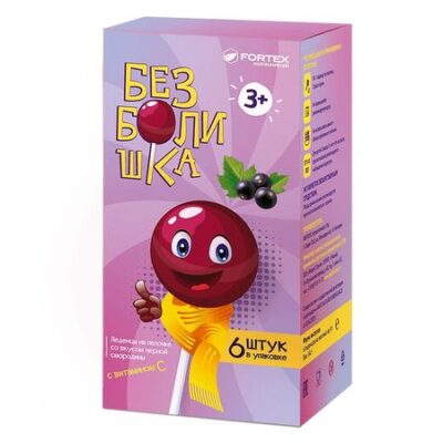 Как дополнительный источник витамина С в целях укрепления иммунитета и как биологически активная добавка к пище в комплексе: при профилактике, при развитии симптомов, а также в составе комплексной терапии воспалительных заболеваний верхних дыхательных путей. Описание Растительные леденцы на палочке для горла с соком черной смородины. Формула «Безболишки» разработана группой европейских ученых с целью создания натурального средства для поддержания иммунитета в периоды простудных заболеваний верхних дыхательных путей с учетом особенностей детского возраста и без использования химических компонентов. Дополнительным преимуществом является приятный ягодный вкус черной смородины, а также удобная для ребенка форма выпуска — леденец на палочке. Входящие в состав компоненты благоприятно воздействуют на дыхательные пути, помогают смягчить воспаленную и раздраженную слизистую оболочку горла, тем самым способствуя облегчению боли в горле, нормализуют работу иммунной системы. НЕ СОДЕРЖИТ сахарозаменителей, консервантов и искусственных красителей, ГМО. Свойства компонентов и область их применения: — Витамин С не образуется в организме человека, а поступает только с пищей. Необходим для обеспечения иммунной защиты от вирусных и бактериальных инфекций. Регулирует иммунологические реакции (активирует синтез антител, С3-компонента комплемента, интерферона), способствует фагоцитозу, повышает сопротивляемость организма инфекциям. — Экстракт Цетрарии Исландской. Особенностью является произрастание только в экологически чистых местах. Если возникает дисбаланс природной экосистемы, растение погибает. В состав растения входит более 10 полезных микроэлементов: лихенин, изолихенин, воск, камедь, марганец, железо, йод, медь, титан, пигменты, лишайниковые кислоты (усниновая, лихестериновая, протолихестериновая, фумарпротоцентраровая и другие). Растение обладает отхаркивающим, антибактериальным, тонизирующим, обволакивающим, противомикробным и ранозаживляющим эффектами. Наличие кислот обуславливают его антисептические свойства, а богатый набор микроэлементов и полисахаридов способствуют укреплению защитных сил организма. Цетрария Исландская или «легочный мох» является природным антибиотиком, оказывает выраженное противовоспалительное действие, разжижает мокроту и облегчает ее отхождение. Облегчает состояние при заболеваниях дыхательных путей. — Экстракт Шалфея лекарственного применяется для облегчения боли в горле, обладает обеззараживающим, регенерирующим и противовирусным эффектом. Шалфей активно участвует в борьбе с болезнетворными микроорганизмами и воспалительными процессами. Эфирные масла шалфея содержат цинеол — компонент, который обладает фитонцидными свойствами и участвует в обезвреживании бактерий. Также шалфей обладает антисептическими свойствами за счет содержащегося в нем сальвина — растительного антибиотика. Кроме того, применение экстракта шалфея способствует уменьшению воспаления и смягчению неприятных ощущений в горле, устраняет охриплость и осиплость голоса. В нем содержатся так называемые дубильные вещества, благодаря которым обеспечивается защита слизистых оболочек от раздражения и дальнейшего повреждения. — Сок черной смородины. Смородина содержит витамины С, А, РР, В, орга