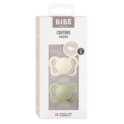 Набор из двух пустышек BIBS Couture с оригинальной накладкой в виде крыльев бабочки и соском анатомической формы. Характеристики Шт. в упаковке — 2 Возраст — 0+ месяцев Форма соска — Анатомическая (скошенная) Страна бренда — Дания Цвет производителя — Ivory/Sage