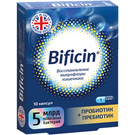 Биологически активная добавка к пище «Бифицин». (Bificin)»: компоненты комплекса способствуют нормализации работы кишечника, восстановлению микрофлоры и повышению защитной функции иммунной системы.