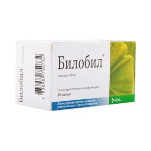 Показания к применениюБессонница (трудности при засыпании), связанная с повышенной нервной возбудимостью.Применение при беременности и кормлении грудьюПри развитии реакции повышенной чувствительности применение препарата необходимо прекратить. Перед хирургическим вмешательством необходимо сообщить врачу о применении препарата Билобил.При повторном появлении головокружения и шума в ушах пациент должен обратиться к врачу. В случае внезапного ухудшения или потери слуха нужно незамедлительно обратиться к врачу.Пациентам с кровоточивостью (геморрагическим диатезом) и пациентам, получающим антикоагулянтную терапию, необходимо проконсультироваться с врачом перед началом терапии препаратом Билобил.Билобил содержит декстрозу и лактозу, поэтому препарат не следует назначать пациентам с галактоземией, дефицитом лактазы, синдромом глюкозо-галактозной мальабсорбции.Билобил содержит краситель азорубин (E122), который может вызвать развитие аллергических реакций и бронхоспазма.Влияние на способность к вождению автотранспорта и управлению механизмамиВ период приема препарата следует соблюдать осторожность при выполнении потенциально опасных видов деятельности, требующих повышенной концентрации внимания и быстроты психомоторных реакций (в т.ч. управление транспортными средствами, работа с движущимися механизмами).ПротивопоказанияПовышенная чувствительность к компонентам препарата, пониженная свертываемость крови, эрозивный гастрит, язвенная болезнь желудка и двенадцатиперстной кишки в стадии обострения, детский возраст (до 18 лет).Побочное действиеНе рекомендуется применение препарата у пациентов, постоянно принимающих лекарственные средства, снижающие свертываемость крови (например, антикоагулянты (прямого и непрямого действия), ацетилсалициловую кислоту и другие НПВС). Одновременное применение с этими препаратами может увеличить риск развития кровотечений вследствие удлинения времени свертывания.СоставДействующее вещество: Гинкго БилобаКонцентрация действующего вещества (мг): 40 мгВзаимодействие с другими препаратамиМеры предосторожности