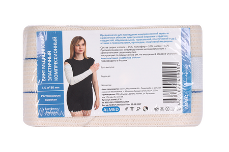 Главная » Аптека Бинт Альмед мед эласт компресс высок растяжимости с застежкой velcro 3.5м х80 мм Просмотров 7 Альмед ООО