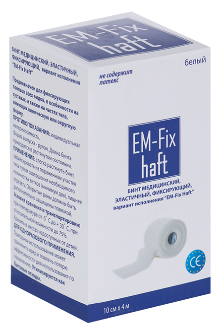 Бинт EM-Fix Haft медицин эластич фиксир белый 10 см х 4 м
