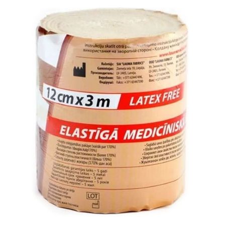 LAUMA БИНТ ЭЛАСТИЧНЫЙ 12СМX3М — эластичный медицинский бинт высокой степени растяжимости (более 170 %) Быстро и легко накладывается без перекручивания бинта, надёжно закрепляется и не сползает. Эластичный медицинский бинт высокой степени растяжимости применяется для профилактики и лечения хронических венозных воспалительных процессов в до- и послеоперационный периоды, для профилактики образования гематом и удержания эндопротезов в стабильном состоянии при пластических операциях, а также для профилактики и лечения травм, связанных со спортом. Специальная технология ткачества, применяемая при производстве бинта, обеспечивает отличное качество и сохранение свойств даже при длительном и интенсивном использовании. Металлический фиксатор позволяет удерживать бинт в нужном месте.