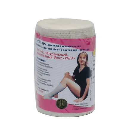 Бренд УНГА — ведущий бренд компрессионного трикотажа, послеоперационных и лечебных бандажей, лечебного белья, бинтов эластичных и спортивных изделий УНГА-ВР БИНТ ЭЛАСТИЧНЫЙ МЕДИЦИНСКИЙ С ЗАСТЁЖКОЙ — Артикул С-305 Длина: 1,5 м Ширина: 8 см Застёжка — велкро (липучка) Бинт медицинский эластичный «УНГА-ВР» (II-ой класс компрессии) предназначен для лечения варикозного расширения вен III, IV степеней; в комплексной терапии тромбофлебитов, после склерозирования и флебэктомии; при лечении растяжений, травм суставов (вывихов, ушибов). Бинты изготовлены на основе эластомера LYCRA ® и натурального хлопка (до 80%). Благодаря многослойности полотна, с телом пациента контактирует только хлопок. Эта технология улучшает паровлагообмен и позволяет коже дышать. Застёжка-липучка и оптимальная ширина полотна делают использование удобным. Использование современных материалов и европейских технологий делает изделия надёжными и долговечными. Бинт сохраняет стабильную компрессию после многократных стирок. БЕЗОПАСНОСТЬ Полная безопасность для здоровья достигается за счет большого содержания натурального хлопка. Это снижает риск развития аллергических реакций. ЭФФЕКТИВНОСТЬ В разработке приняли участие специалисты Института хирургии им. А.В. Вишневского РАМН. К тому же эффективность подтверждена клиническими исследованиями. Соблюдение всех отраслевых стандартов гарантирует высокое качество. КОМФОРТ Специальная многослойная технология улучшает паровлагообмен, позволяет коже дышать. Застёжка-липучка и оптимальная ширина полотна делают использование удобным. ДОЛГОВЕЧНОСТЬ Использование современных материалов и европейских технологий делает изделия надёжными и долговечными. Сохраняет стабильную компрессию после многократных стирок.