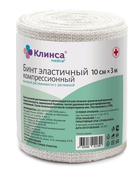 Бинт эластичный высокой растяжимости Клинса 300×10см