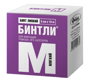 Липкий бинт Бинтли® предназначен для фиксации повязок и покрытий, накладываемых на раны, а также для фиксации игл, катетеров, дренажных трубок, кало- и уроприёмников и других медицинских устройств.Липкий бинт Бинтли® изготовлен из нетканого материала, покрытого гипоаллергенным акрилатным клеем. Благодаря своей воздухо- и паропроницаемости липкий бинт Бинтли® создаёт комфортные условия для раны и кожи вокруг неё, позволяя коже «дышать», а используемый клей снижает до минимума вероятность раздражения кожи.Клеевой слой закрыт антиадгезионной бумагой, которую необходимо снять перед наклеиванием бинта.Выпускается две модификации, различающиеся по степени драпируемости:Бинтли®–М производится из нетканого материала, состоящего из смеси полиэфирного волокна и вискозы. Этот бинт обладает гораздо большей драпируемостью, что делает его очень удобным для фиксации повязок на поверхностях со сложным рельефом, локтевых, коленных суставах и т.п.Бинт липкий Бинтли®: Длительно и надежно удерживает повязки на ране, Создаёт комфортные условия для раны и кожи вокруг неё, Непроницаем для микробов и защищает рану от инфекции.