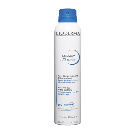 ИННОВАЦИЯ лаборатории БИОДЕРМААтодерм SOS Спрей содержит два инновационных комплекса ингредиентов, которые воздействуют на биологические причины атопического дерматита, псориаза и на другие причины хронического и временного зуда.Зуд может появиться в любой момент. Атодерм SOS Спрей устраняет зуд за 60 секунд и действует 6 часов.Снижает вероятность расчесов и обеспечивает мгновенный комфорт.Благодаря ультралегкой текстуре происходит быстрое проникновение средства в кожу. Легкость в применении.Уровень рН средства соответствует физиологическому рН (между 5 и 5.5).Проведены клинические исследования.Протестировано под дерматологическим контролем.
