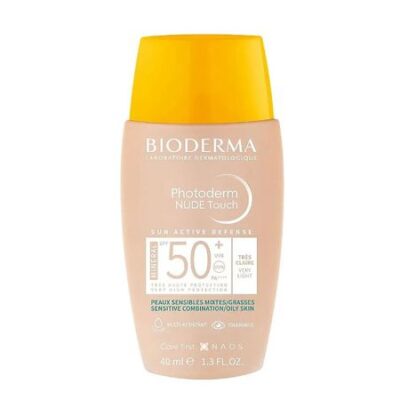 Бренд BIODERMA — французская лечебная косметика, производимая Лабораторией Bioderma структурирована и представлена в виде 9 линий, каждая из которых является готовой программой для решения конкретных дерматологических проблем. Гипоаллергенный состав, оптимальная переносимость, многоуровневый контроль в ходе клинических исследований позволяют применять лечебную косметику Биодерма для пациентов всех возрастных групп, включая младенцев, обеспечивают оптимальный уход за кожей при разнообразных кожных патологиях.Линия Photoderm — солнцезащитные средства для взрослых и детейBIODERMA PHOTODERM NUDE TOUCH MINERAL ФЛЮИД СОЛНЦЕЗАЩИТНЫЙ С ТОНОМ МИНЕРАЛЬНЫЕ ФИЛЬТРЫ SPF 50+ — для чувствительной комбинированной и жирной кожи.Тон: очень светлый оттенокВнешний вид и свойства: нелипкая, нежирная ультралёгкая комфортная текстура, тон обеспечивают пигменты в составе средства.Очень высокая степень защиты от солнца (защищает от UVB, UVA; PA++++)Солнцезащитный флюид — это мгновенное матирование кожи, противовоспалительный эффект и защита от солнца.Формула с 100% минеральными фильтрами и революционной трехступенчатой технологией Liquid-to-powder-При нанесении летучие вещества испаряются, образуя чрезвычайно легкую формулу.-Шелковистое покрытие позволяет пигментам и фильтрам равномерно наноситься на кожу, обеспечивая идеально защищенный и ровный цвет лица.-Увлажняющие агенты проникают в поверхностные слои кожи, создавая пудровую матовую текстуру.В составе патент SUN ACTIVE DEFENSE: высокотехнологичное решение для усиленной защиты от UVA-лучей.Сочетание UV-фильтров и запатентованная технология биологической защиты гарантируют защиту от UVA- и UVB- излучения.Сохраняет здоровье кожи во время пребывания на солнце.Выравнивает тон кожи.Равномерно ложится на кожу.Матирует до 8 часов, не закупоривает поры.Способствует уменьшению несовершенств.Подходит для светлой кожи.Средство прошло дерматологический и офтальмологический контроль (хорошо переносится кожей и слизистой глаз).Некомедогенное.Водоустойчивое.Стойкое к поту и песку.Фотостабильное.Без отдушки.Результат: кожа надежна защищена от негативного воздействия УФ-лучей. Равномерный невидимый тон со стойким матовым финишем.Отсутствие острой токсичности для кораллов, микроводорослей ISO 10253, дафний OECD 202.Для всех средств гаммы Photoderm.