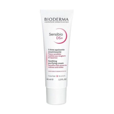 Линия средств Bioderma Sensibio создана для чувствительной кожи, склонной к покраснениям, раздражениям, к появлению аллергии, купероза, розацеа и дерматита. Bioderma Sensibio DS+ крем эффективно помогает справиться с покраснениями и шелушениями преимущественно в себорейных зонах: крылья носа, брови, лоб, подбородок. Средство работает не только как увлажняющий крем, но и как профилактический уход, воздействующий на причины похожих состояний. Крем останавливает распространение бактерий, ответственных за появление покраснений, шелушений и возникновение неприятных ощущений. А компактный размер позволяет брать крем с собой в поездку. Превосходная переносимость, гипоаллергенно и некомедогенно. Рекомендовано дерматологами. АКТИВНЫЕ КОМПОНЕНТЫ 1.патент D.A.F. (Dermatological Advanced Formulation) — повышает переносимость кожи и помогает ей противостоять неблагоприятному воздействию извне 2.аллантоин и эноксолон — успокаивают кожу, снимают раздражение и минимизируют неприятные ощущения 3.кокосовое масло — питает кожу и визуально корректирует шелушения