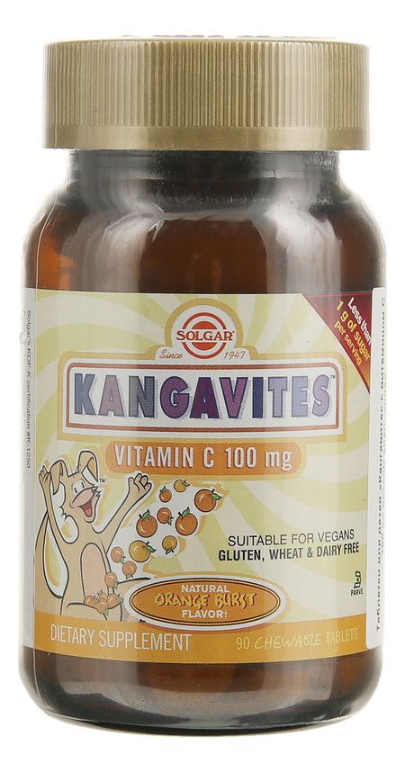 Главная » Аптека Биодобавка для детей с витамином С Kangavites Chewable 100Mg 90 таблеток Просмотров 14 SOLGAR