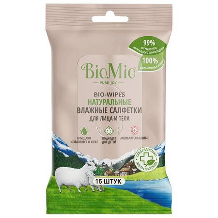 Натуральные влажные салфетки с фруктовыми кислотами BioMio BIO WIPES для лица и тела. Подходят взрослым и детям, в том числе с чувствительной кожей. — Яблочная и молочная кислоты способствуют бережному очищению и увлажнению, поддерживают pH баланс кожи; — Экстракт хлопка смягчает кожу; — Коллоидное серебро оказывает антибактериальный эффект. Основа салфеток — на 100% биоразлагаемая вискоза, это делает их безопасными для природы. В составе нет спирта, синтетических антисептиков и отдушек, PEG, EDTA. Гипоаллергенность продукта доказана клинически. Продукт прошел сертификацию V-Label, что подтверждает отсутствие компонентов животного происхождения. Подходит для веганов