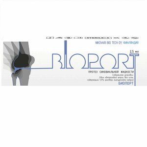 Биопорт — высокотехнологичная синтетическая гиалуроновая кислота. Предназначена для восстановления количества и улучшения свойств синовиальной жидкости в суставах после травматических повреждений и на разных стадиях остеоартроза.Раствор стерильный для однократной внутрисуставной инъекции.НАЗНАЧЕНИЕГиалуроновая кислота — ключевой компонент синовиальной жидкости. Эта жидкость заполняет полость сустава и выполняет функцию смазки, предотвращая трение суставных поверхностей.При повреждении сустава синтез синовиальной жидкости и её качество понижаются. Повышенное трение запускает процесс разрушения суставного хряща, которое приводит к остеоартрозу.Чтобы замедлить развитие заболевания, используется синтетическая гиалуроновая кислота, максимально приближенная по параметрам к составу синовиальной жидкости человека.Как работает БИОПОРТБИОПОРТ восполняет и улучшает свойства синовиальной жидкости при остеоартрозе или посттравматических изменениях в суставах.В основе продукта — синтетическая гиалуроновая кислота, чья молекулярная масса максимально приближена к средним значениям молекулярной массы полимера, синтезируемого телом человека.Высокая молекулярная масса, то есть большая длина цепи молекул, обеспечивает снижение трения в суставе, улучшает его амортизацию и подвижность.При возрастных изменениях и воспалительных процессах длина цепи снижается, снижая возможности гиалуроновой кислоты к выполнению своей основной задачи — биологической смазке суставов.ПРЕИМУЩЕСТВАВысокая клиническая эффективность протеза синовиальной жидкости БИОПОРТ обусловлена следующими факторами:Заметное улучшение — Гиалуроновая кислота удерживает влагу в синовиальной жидкости, снижая трение, улучшая амортизацию и повышая подвижность сустава.Длительный эффект — Высокая молекулярная масса гиалуроновой кислоты (3?3,5 мДа) максимально близка к средним значениям естественного полимера организма и достоверно обеспечивает длительный терапевтический эффект при лёгких и средних стадиях артроза уже после двух инъекций.Высокотехнологичное производство — Высокая степень очистки действующего вещества — синтетической гиалуроновой кислоты.Натуральный синтез — Гиалуроновая кислота производится методом биоферментации (микробный синтез), что обеспечивает низкий риск появления аллергических реакций и других побочных эффектов.Роль БИОПОРТа в терапии остеоартрозаЗадача протеза синовиальной жидкости — снизить трение и увеличить подвижность сустава после травм или на ранних стадиях развития артроза.Курсы терапии с применением БИОПОРТа снижают агрессивность проявления симптомов артроза и замедляют процесс развития патологии суставов в течение длительного периода (до 12 месяцев).При этом инъекции гиалуроновой кислоты не подразумевают восстановления уже повреждённой хрящевой ткани и устранения появившихся проявлений остеоартроза.Для восстановления повреждённой хрящевой ткани следует рассмотреть другие методики, например хондропластику или её продвинутую форму — матрично-индуцированный аутологичный хондрогенез.