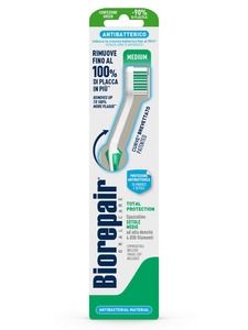Создана по новейшей технологии с нанесением на щетину специальных частиц microRepair®, которые восстанавливают эмаль. Состав частиц microRepair® идентичен природному гидроксиапатиту, из которого состоят эмаль и дентин. Благодаря своей игольчатой структуре частицы microRepair® встраиваются в микротрещины эмали, восстанавливают ее и возвращают гладкость.Имеет запатентованную эргономичную ручку с уникальным изгибом головки, которая обеспечивает больший доступ к труднодоступным местам и облегчает процесс гигиены.Головка и ручка зубной щетки обработаны самоочищающимся полимером SCP (Self Cleaning Polymer), который препятствует размножению бактерий.Содержит 4.030 щетинок (это в 4 раза больше, чем у стандартных щеток). Такая высокая плотность позволяет добиться качественного и бережного удаления налета с поверхностей зубов.На задней стороне есть специальная щетка для языка, которая обеспечивает полный уход за полостью рта.Прямой срез и высокая плотность щетинок обеспечивает глубокое очищение и удаление налета, не повреждая зубы и дёсны.Основные функции Total Protection Medium:Препятствует размножению бактерий, благодаря обработке самоочищающимся полимером SCP,Обеспечивает доступ к любому месту в полости рта,Деликатное удаление налета с поверхностей зубов.Рекомендована:для ежедневного ухода за полостью рта,для профилактики кариеса,для удаления налета с поверхности зубов,