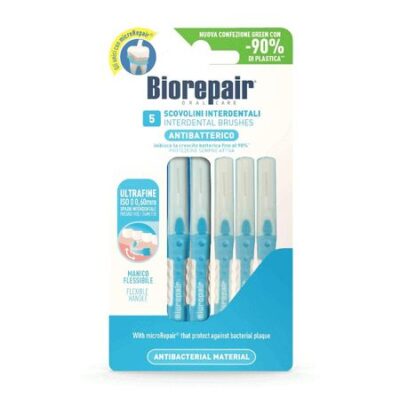 Цилиндрические ершики Biorepair Ultra оказывают антибактериальное действие благодаря бактериостатическому самоочищающемуся полимеру SCP (Self Cleaning Polymer). В его основе — свободные олигоэлементы, которые не дают бактериям размножаться. С использованием SPC сделаны щетинки, прорезиненные и пластиковые детали. Бактериостатическое свойство сохраняется и остается эффективным в течение долгого времени. — Оказывают интенсивное антибактериальное воздействие. — Не повреждают эмаль и десны благодаря стальному стержню, покрытому полиуретаном. — Оснащены удобными защитным колпачком и гнущейся ручкой. — Обладают приятным ароматом мяты и освежают дыхание. — Подходят для использования дома, на работе, в дороге. Ершики подходят: — для глубокой чистки здоровых зубов и десен; — для использования дома, на работе, в дороге.