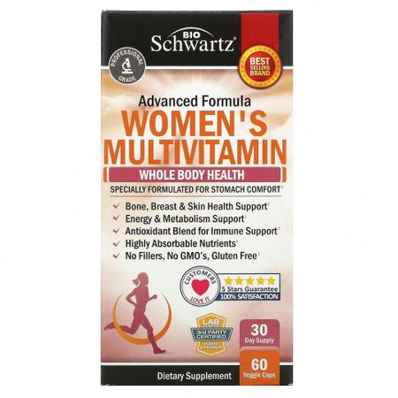 65 мг ** Суточная норма не определена. Профессиональное средство Самый популярный бренд Здоровье всего организма Специально разработано для поддержки комфортного состояния желудкаПоддержка здоровья костей, груди, кожи Поддержка метаболизма Антиоксидантная смесь для укрепления иммунитета Быстро всасывающиеся ингредиенты Не содержит наполнителей, ГМО и глютена Покупатели любят этот продукт5-звездная гарантияКурс на 30 днейПищевая добавкаНе содержит глютенаПроизводится в соответствии со стандартами надлежащей производственной практикиЧистота и эффективность протестированы независимой лабораториейБезопасностьЗнанияВысокое качествоОбязательства ЦелостностьВысочайшие стандартыПравильное сочетание мультивитаминов является ключом к ежедневному поддержанию здоровьяЧто делает наши мультивитамины для женщин уникальными?