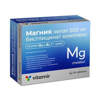 Главная » Аптека Бисциглинат магния хелат комплекс с вит. и цинком таб. 500мг №30 Просмотров 3 Квадрат-С ООО